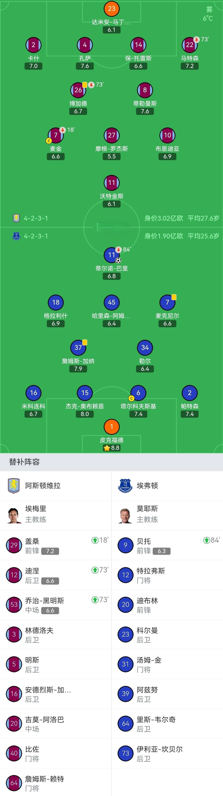 英超第22轮的比赛中,目前排名第3、近期状态极佳的维拉队主场对阵埃弗顿。